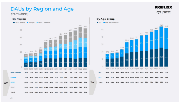 A key thing to know about Roblox up-front? The kids love it. According to a recent earnings presentation, over half of Roblox users are under the age of 13.