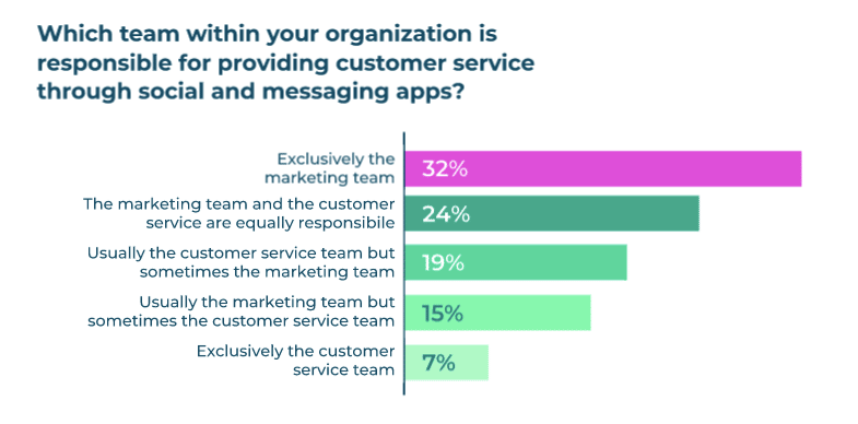 graph of teams that are responsible for providing customer service through social and messaging apps