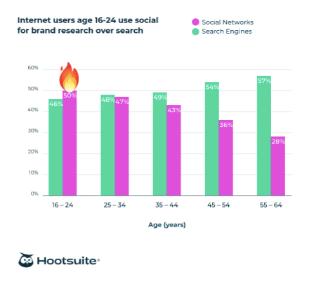 • For younger users, social networks are the preferred source of information for brand research (50%), outanking even search engines (46%).